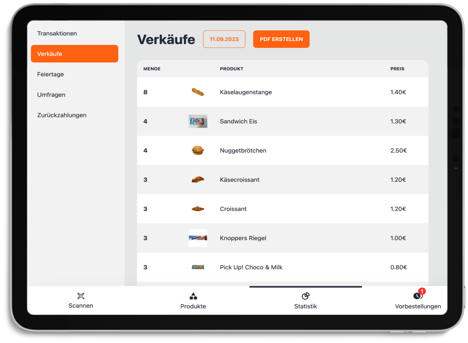 Automatisch generiert das System ein umfassendes Dokument mit allen Verkäufen in Echtzeit.